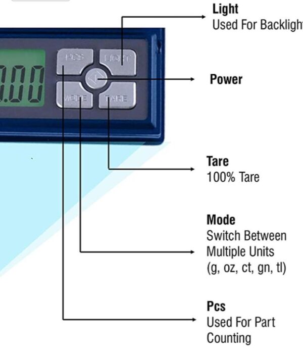 این ترازو میتواند در واحد های وزنی دیگری به غیر از گرمی، از جمله قیراط و انس را اندازه گیری کند.